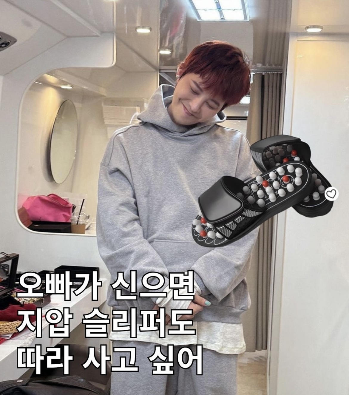 우리 같이 트렌드리더,,, 나도 지압 신어,, 근데 내 지압이 더 아픈거야 큰 돌이 있어,,