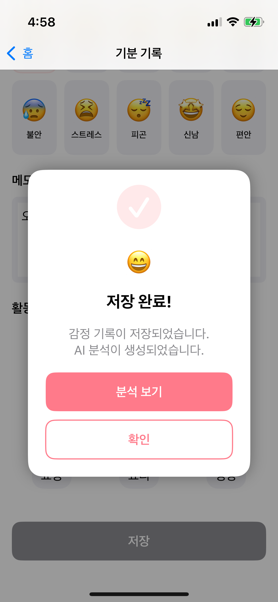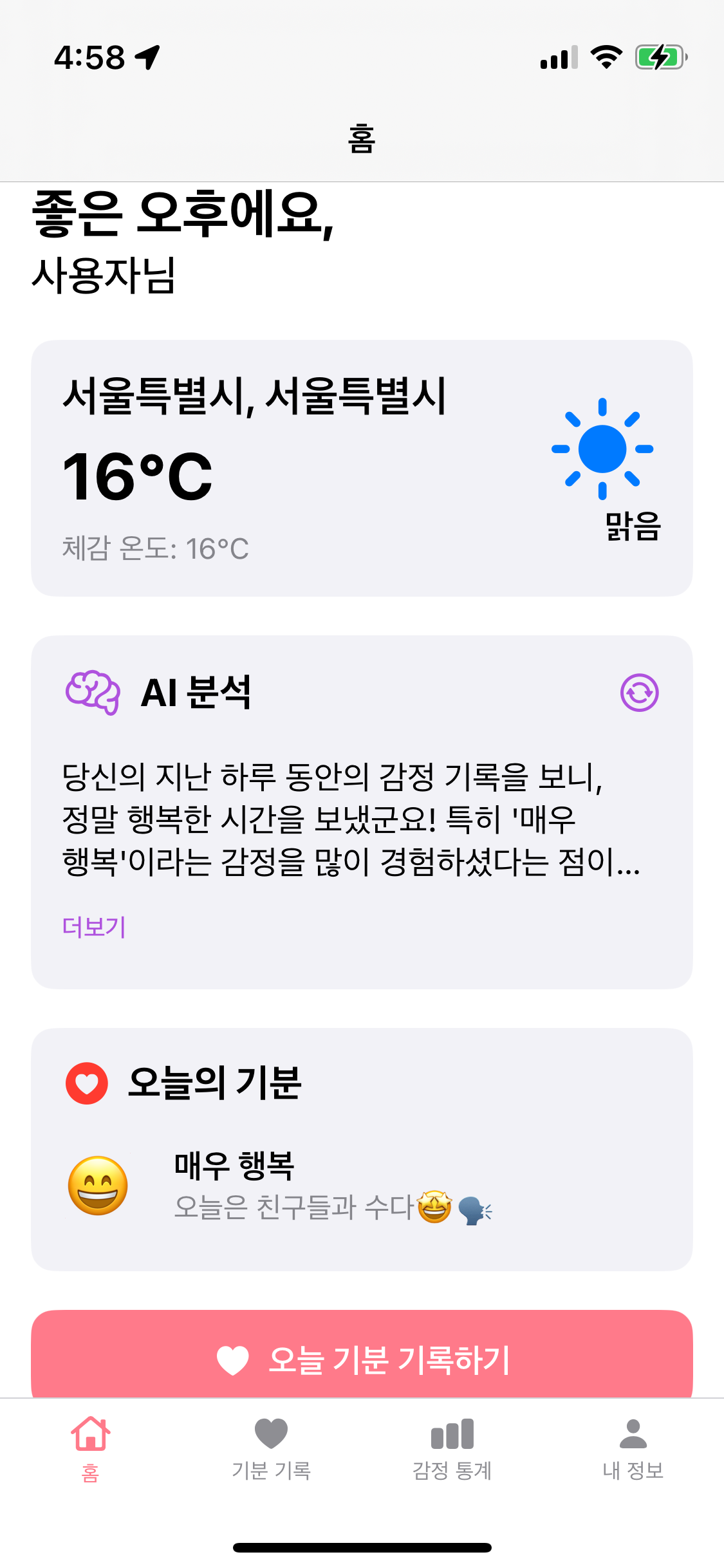 처음에는 감정 기록 기능만 있었다. 사용자는 감정을 선택하고 메모를 남길 수 있었지만 기록이 쌓일수록 느꼈다.