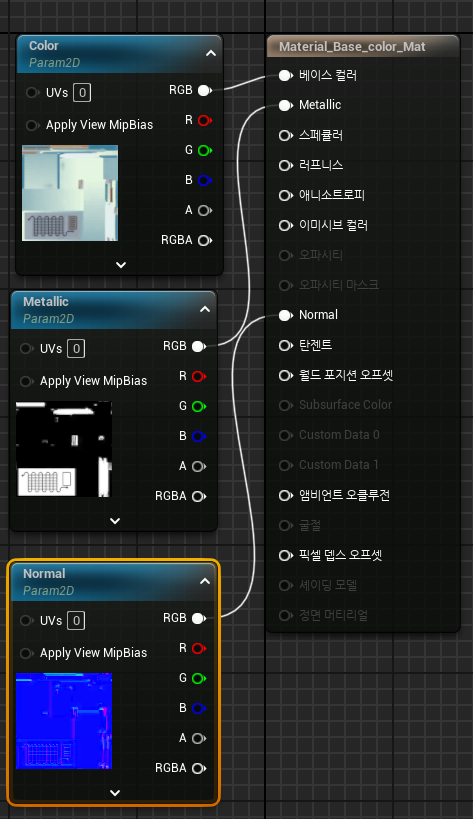 그럼 이제 Parameter Name에 이 머티리얼 파라미터(Color, Metallic, Normal) 중 바꾸길 원하는 하나의 이름을 넣어주면 된다.