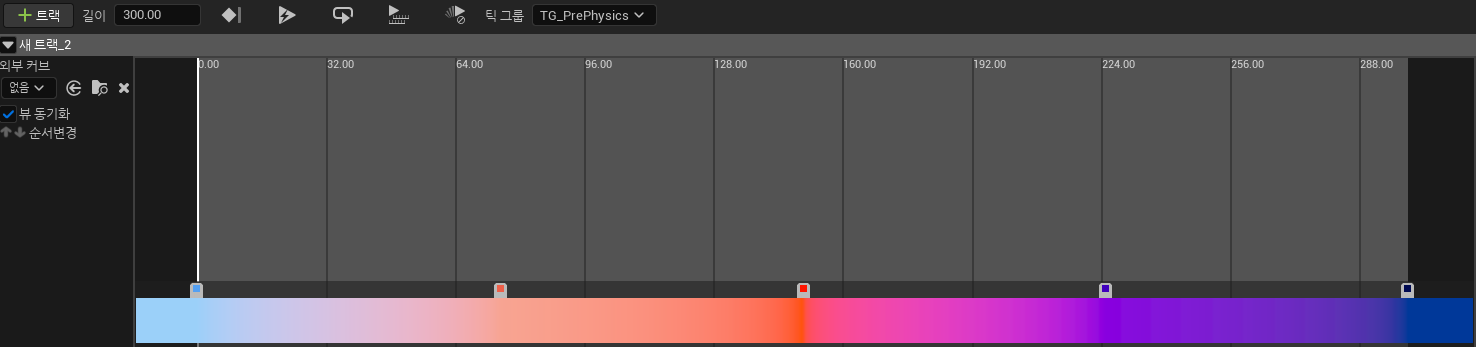 컬러 트랙을 추가하여 색이 변경되길 원하는 시점에 키들을 추가해주었다.