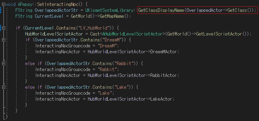 위와 같은 함수를 통해 현재 플레이어가 상호작용 중인 액터가 무엇인지 구분하고자 하나, 에디터와 패키지 게임이 OverlappedActorStr의 값으로 각각 다른 값을 반환하는 문제가 발생했다.