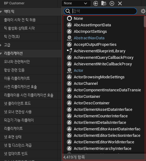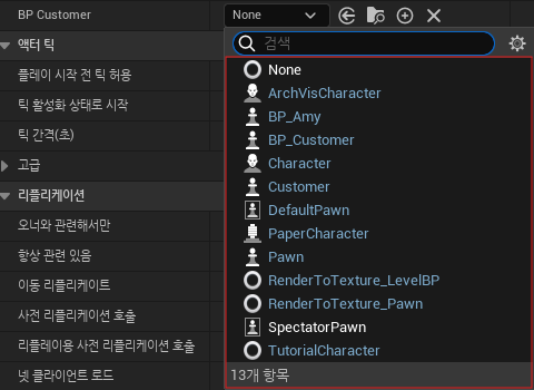 TSubclassOf를 사용하여 선택 가능한 클래스를 제한할 수 있다. (특정 클래스의 파생 클래스만 선택 가능하도록 한다.)