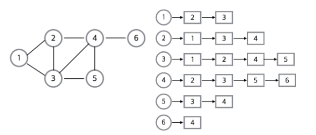 - 인접 리스트는 그래프의 노드를 리스트로 표현한 것이다. 주로 정점의 리스트 배열을 만들어서 관계를 설정한다.