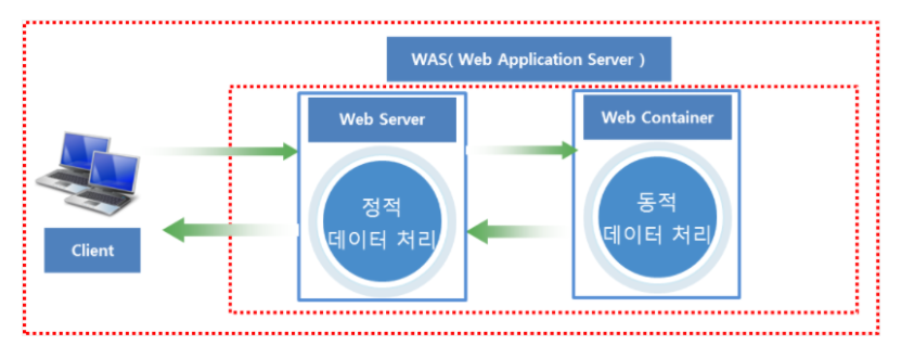 - WAS는 Web Application Service라는 이름과 같이 웹 어플리케이션을 구동하는 서버를 의미한다.