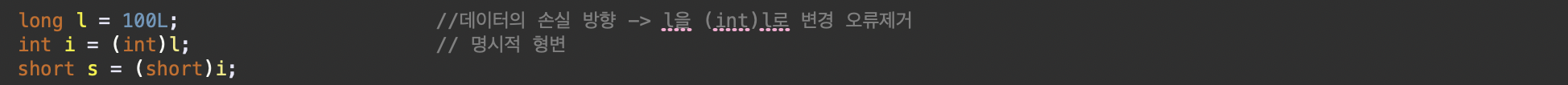 데이터 손실 감수하더라도 강제로 형변환 시키는 형태