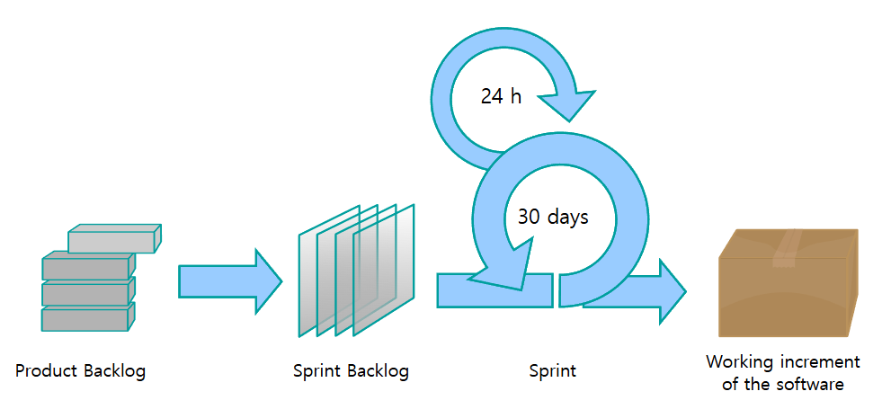 스크럼으로 대표되는 애자일 개발방식을 주로 사용된다.