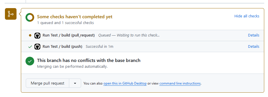 jobs로 지정한 명령을 GitHub 내에서 수행되는것을 확인이 가능하다.