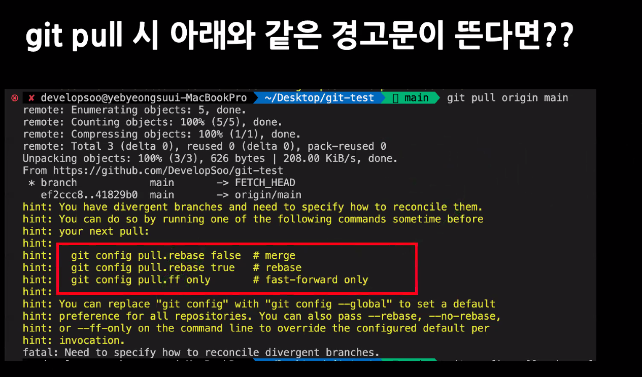 git pull : 다른사람이 변경한 코드내 코드에도 가져오기