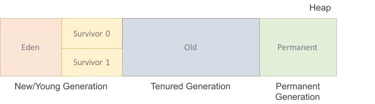 Permanent Generation 영역은 Method Area라고도 한다. 객체나 억류(intern)된 문자열 정보를 저장하는 곳이며, Old 영역에서 살아남은 객체가 영원히 남아 있는 곳은 절대 아니다. 이 영역에서 GC가 발생할 수도 있는데, 여기서 GC가 발생해도 Major GC의 횟수에 포함된다.