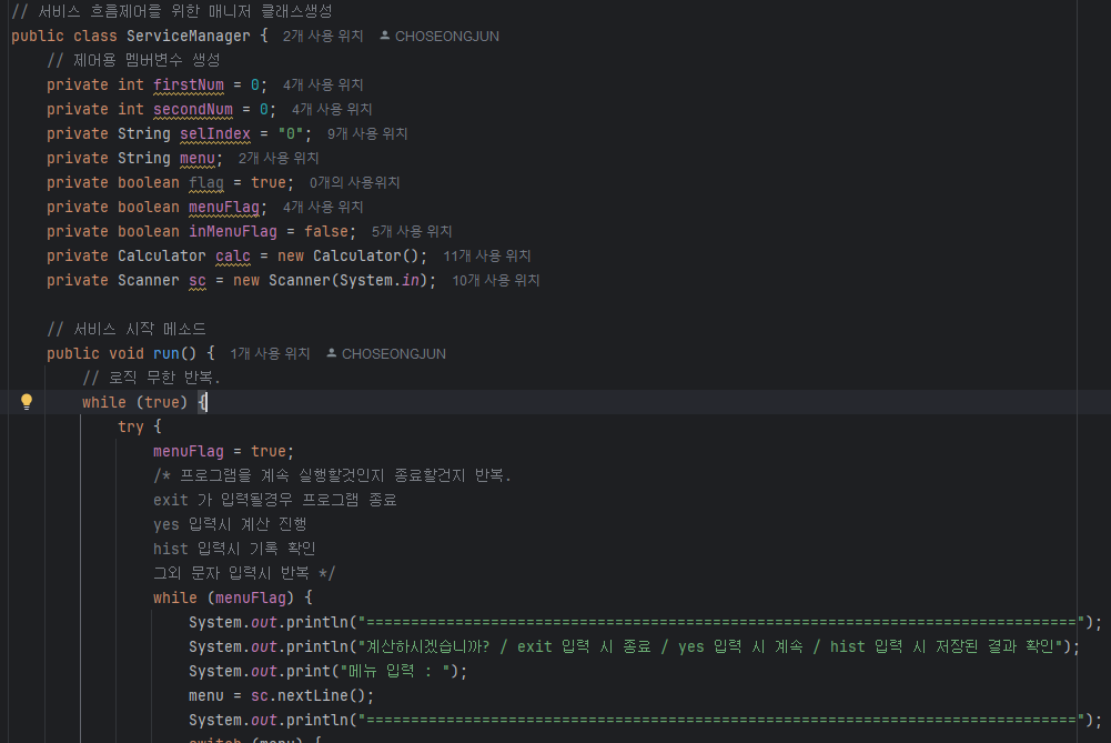 2. 문제해결 : 별도의 ServiceManager 클래스를 생성. 해당 클래스에 제어를 대신 진행. main 메소드는 실행만 진행.