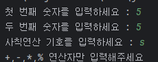 //연산자 외 문자 입력시 예외 발생 유도