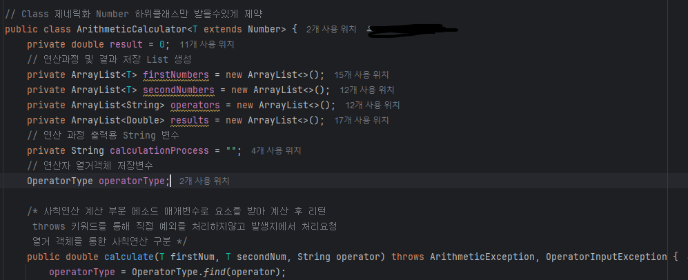 • p.s : 내가 생각한 제네릭의 개념(타입 분간 등) 과 활용한 제네릭의 개념이 맞나 생각하여 튜터님께 물어본 결과 위에 클래스에서 Number Class에 대하여 상속을 받아 일단 숫자가 들어온다는거 자체가 제네릭으로써의 활용이 충분하다 답변해주심.