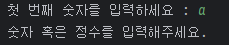 // 숫자 실수 및 문자 입력시 예외발생 처리