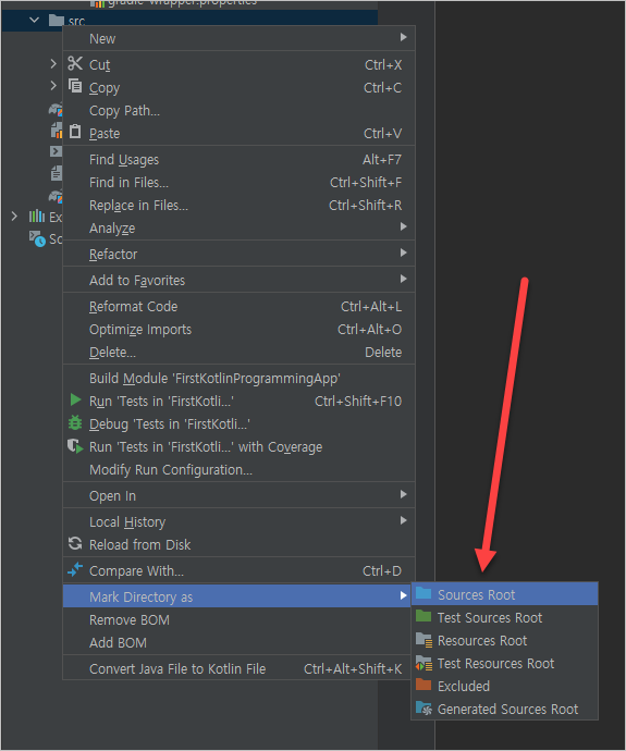 3. 문제해결 : 인텔리J 상의 폴더구조로 들어가서 src를 루트폴더로 적용하며 문제해결.