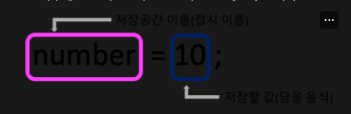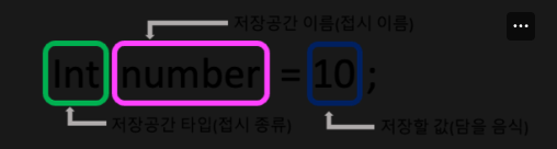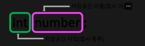 int number; // number 라는 이름의 int(숫자)타입의 저장공간을 선언