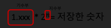 부동소수점 : 소수점이 고정되어있지않고 움직임. 지수부/가수부로 나눔.