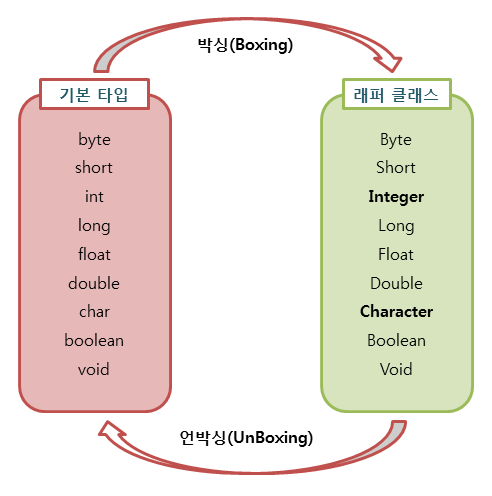 - JDK 1.5 이상부턴 오토 박싱/언박싱이 적용된다.