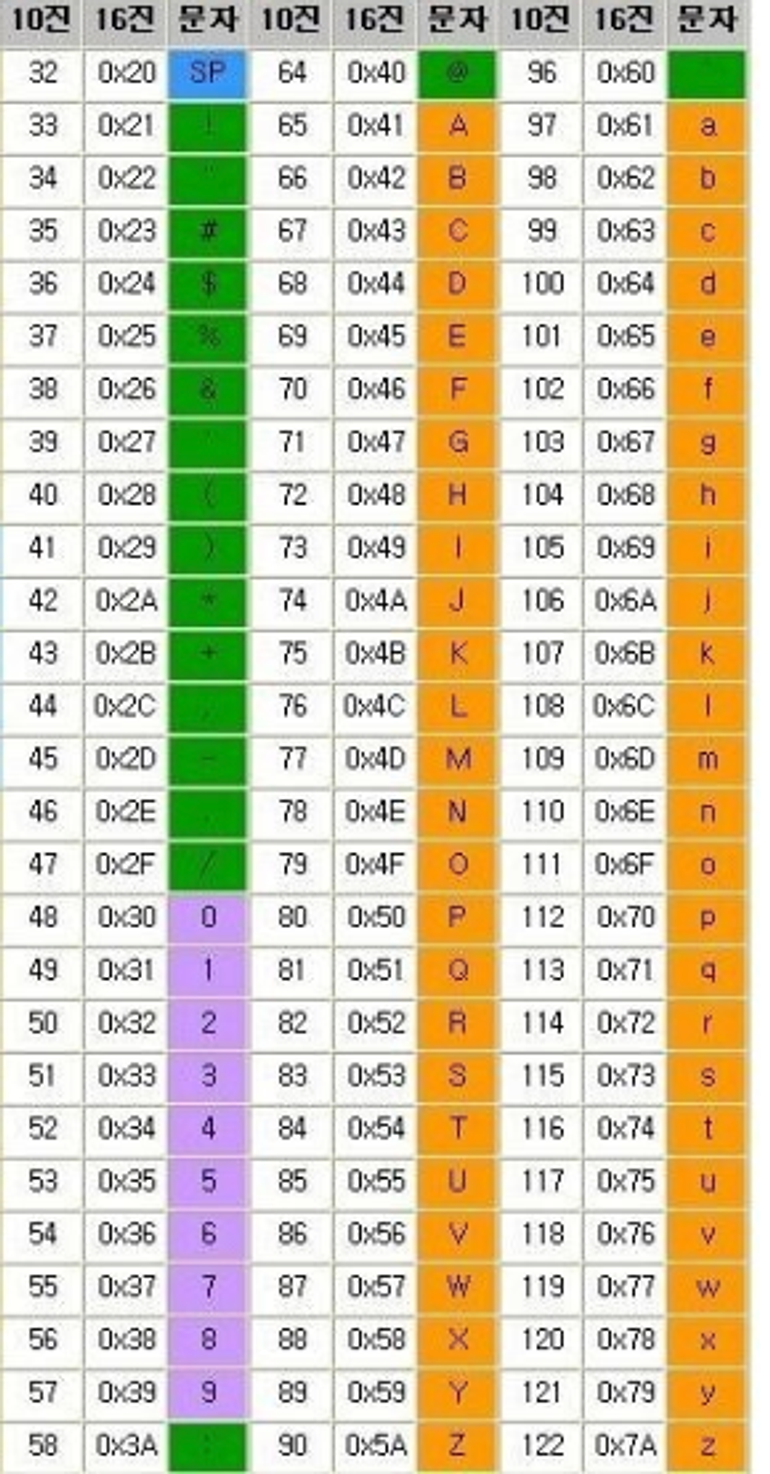 아스키코드라는 규칙을 이용하여 표현