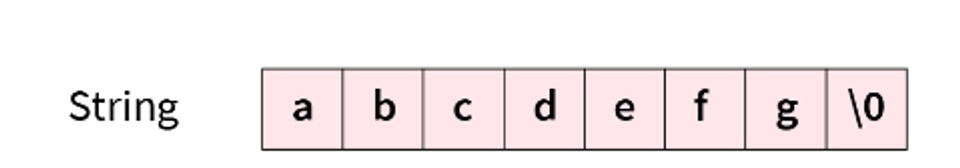- String의 경우 byte의 양을 계산할수 없기에 \0(null)이 포함됌