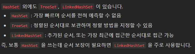 // (사용하기 위해선 import java.util.Set; 와 java.util.HashSet; 를 추가해야합니다.)