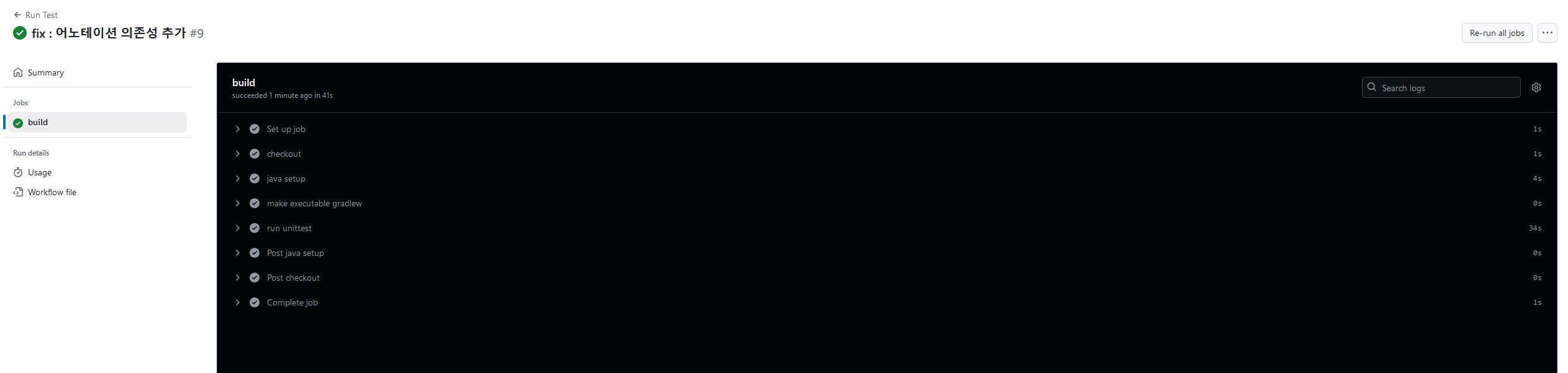 main 브랜치에 최소한의 안전장치를 위하여 gradle 이 제대로 빌드되는지와 작성된 TestCode들이 제대로 동작하는지에 대한 CI를 GithubAction 을 통해 지정해두었다.