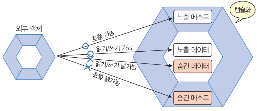 - 원하는 필드, 메서드만 외부로 열어줄수 있음.