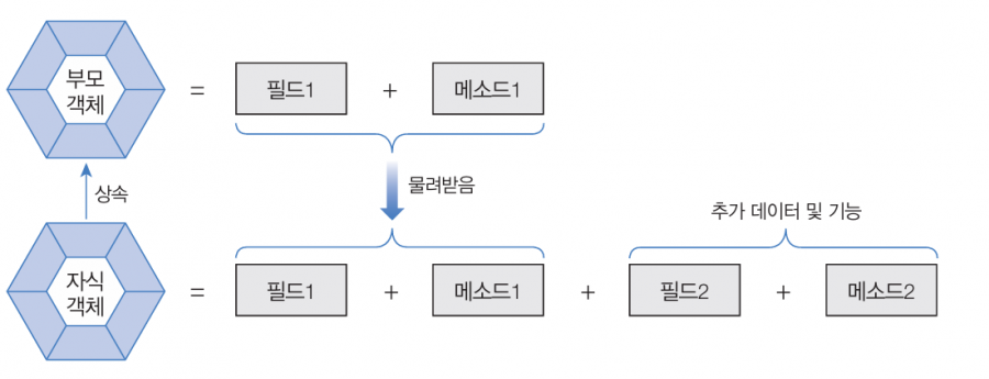 - 부모클래스의 멤버를 자식클래스가 상속받아서 사용하고 필요시 기능을 추가하거나 재정의 가능 (@Override).