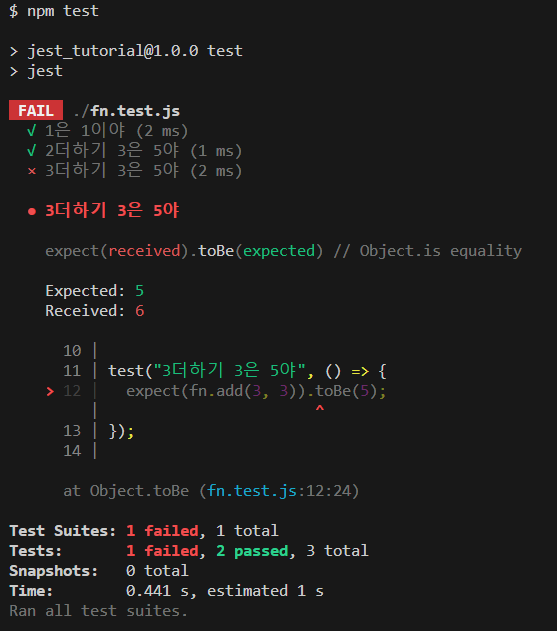 npm test로 테스트 코드 실행
