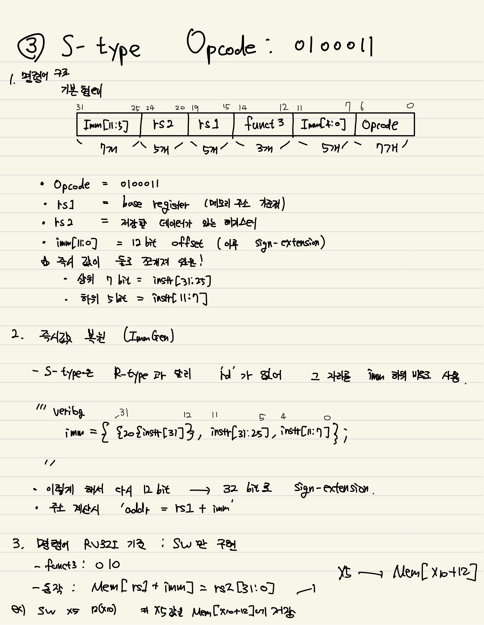 sw만 구현할 것인데, 32 bit 정보를 그대로 저장하는 sw왜 즉시값 비트가 분산배치?