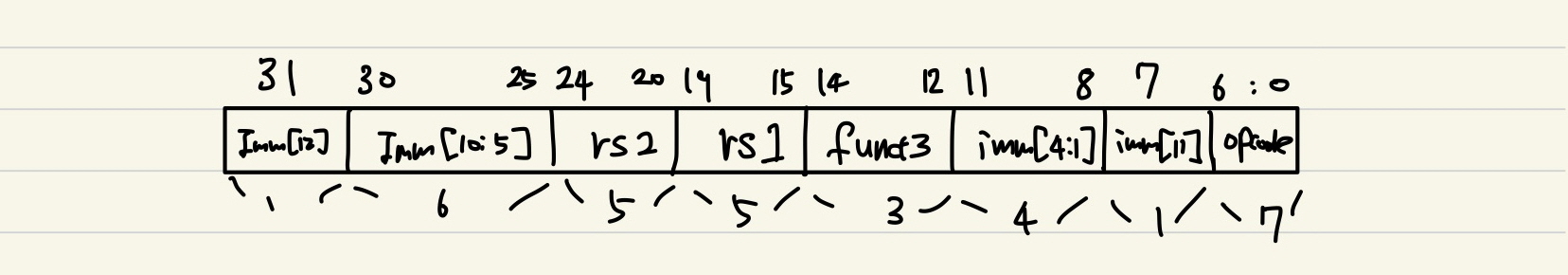+남은 Imm[0] 자리에는 가장 높은 비트 만만한거 하나 가지고 온 것이다! Imm[12]는 sign bit이니 가져오기 애매해서 그 다음 것인 Imm[11]을 가져온 것!