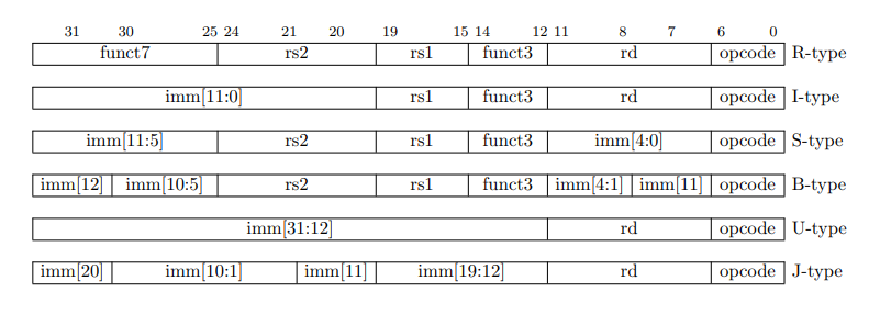 Figure 1: RV32I의 6가지 format 정보