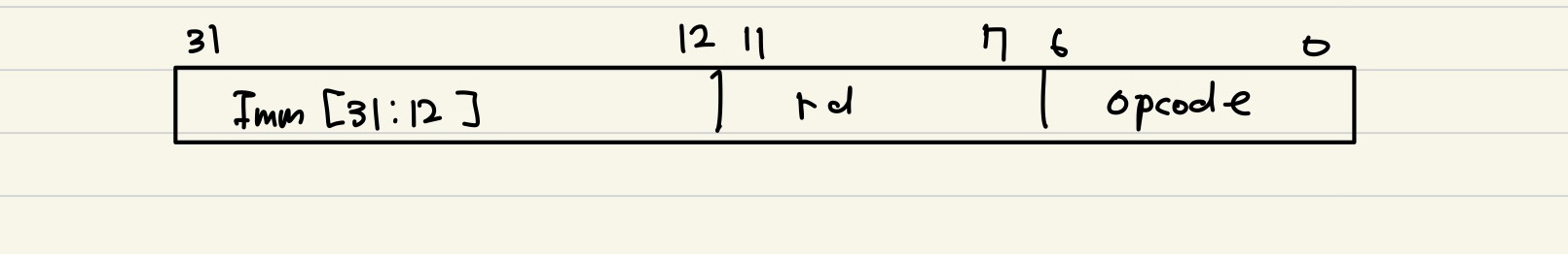 LUI rd Imm | rd <- imm << 12 | 상위 20 bit load (하위 0)