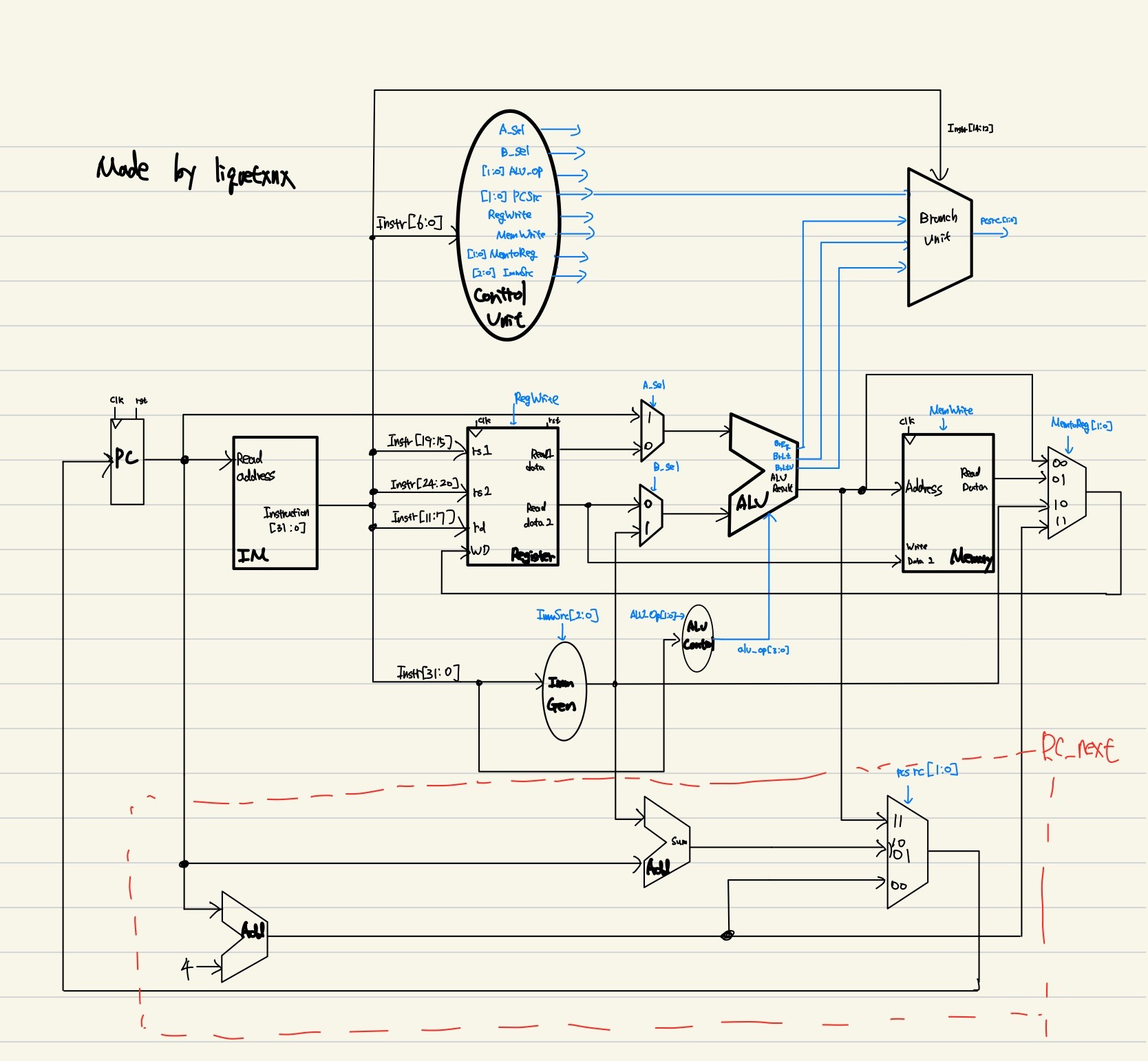 Control signal 들은 가독성을 위해 파란색으로 표시했다.