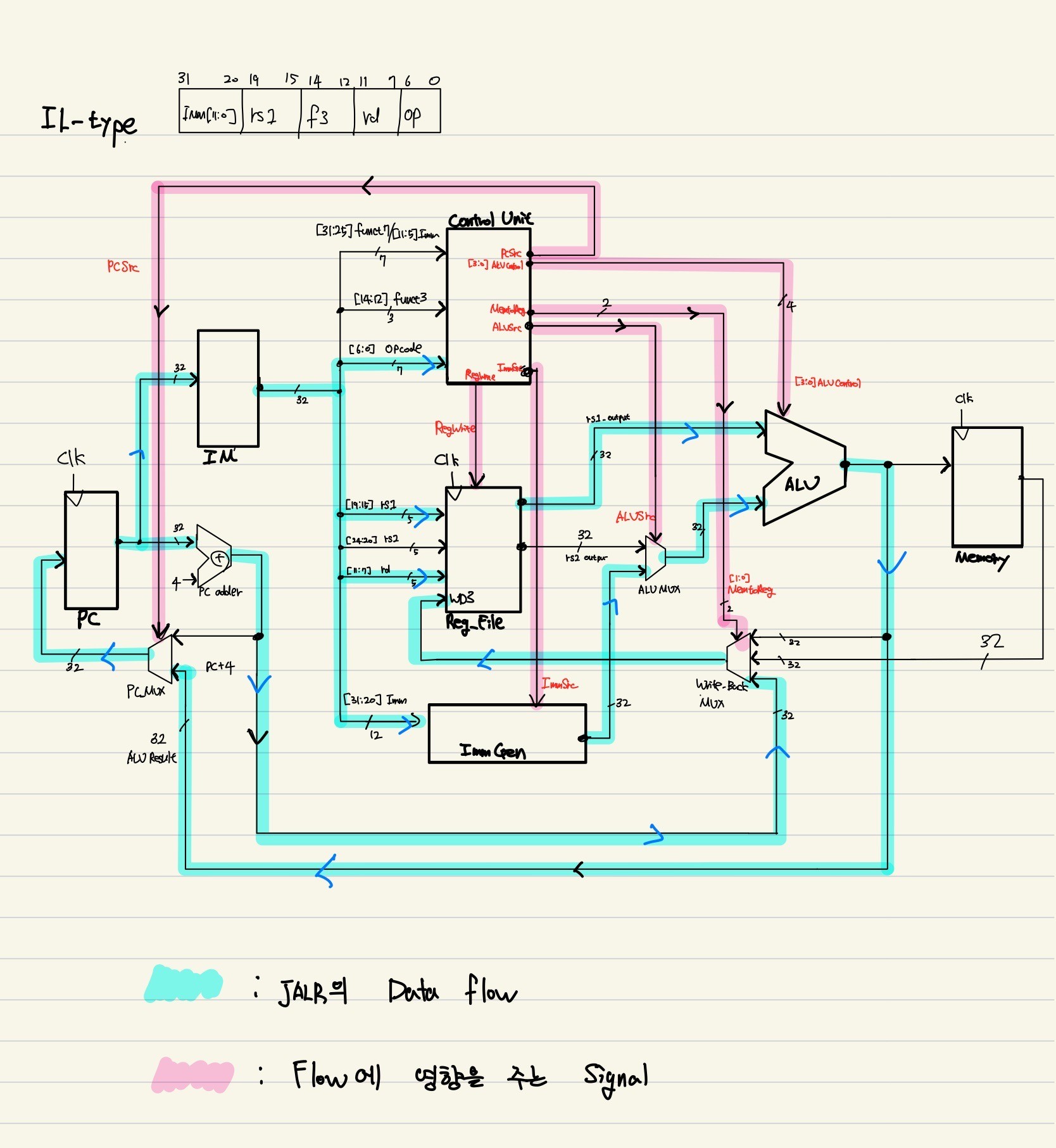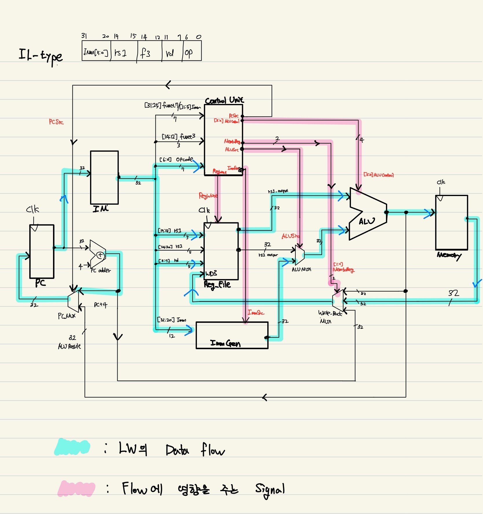 이후 각 Instruction type에 따라 data path를 설계하고 그에 맞는 필요한 control signal을 만든다.