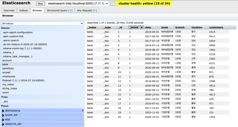 # ElasticSearch으로 bank이라는 이름으로 인덱싱