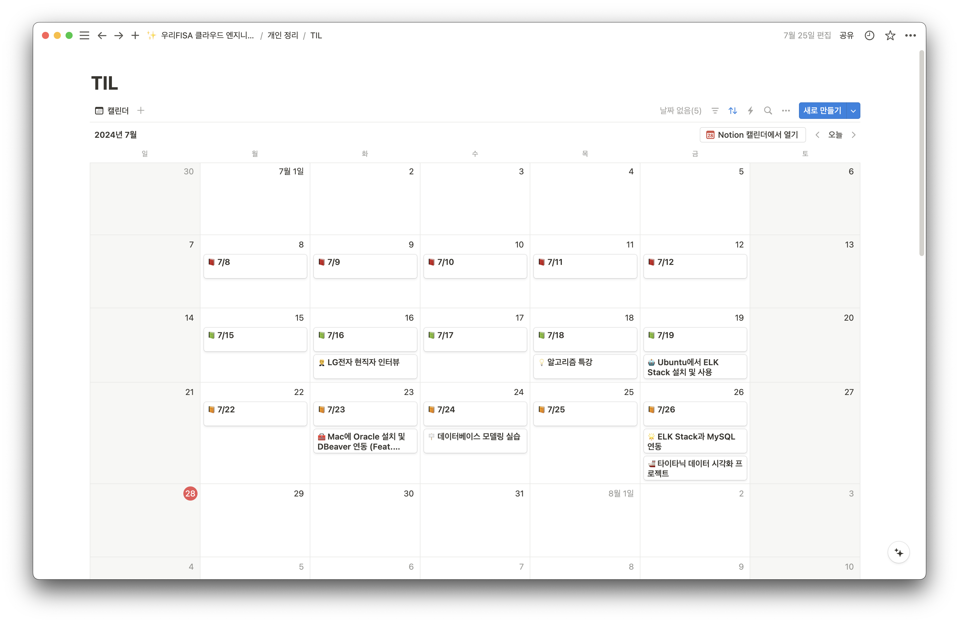 매일 노션에 그날 배운 내용을 정리하고, 길어지는 내용은 따로 페이지에 정리하고 있다.