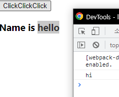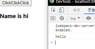 버튼을 클릭하면 name이 hi로 바뀌는 코드를 작성하였다.