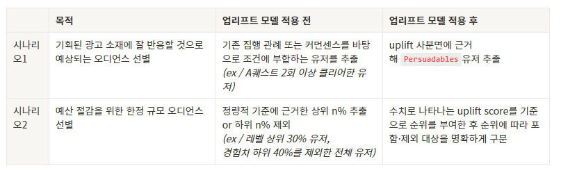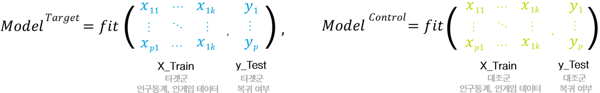 Point ✔️ 두 경우의 결과를 모두 관찰하기 위해선 한 오디언스 그룹(이탈유저)을 대상으로 각각의 모델을 통한 별개의 예측을 진행해야한다.