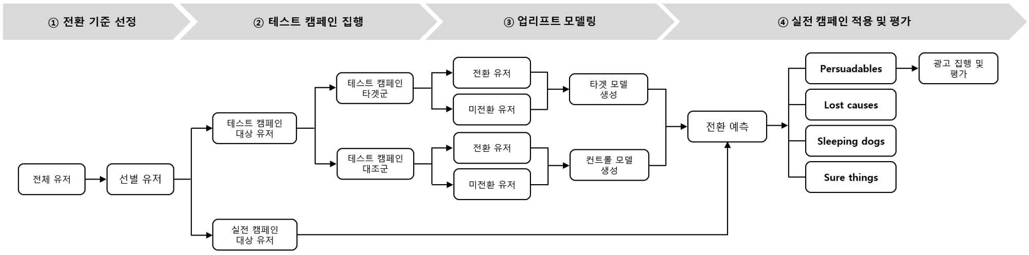 업리프팅이라는걸 처음 알게 되었는데, 뭐랄까요, RFM 과 A/B 테스트를 섞은 느낌이 들었습니다. 따지고보면 완전히 다르지만요 ㅎㅎ