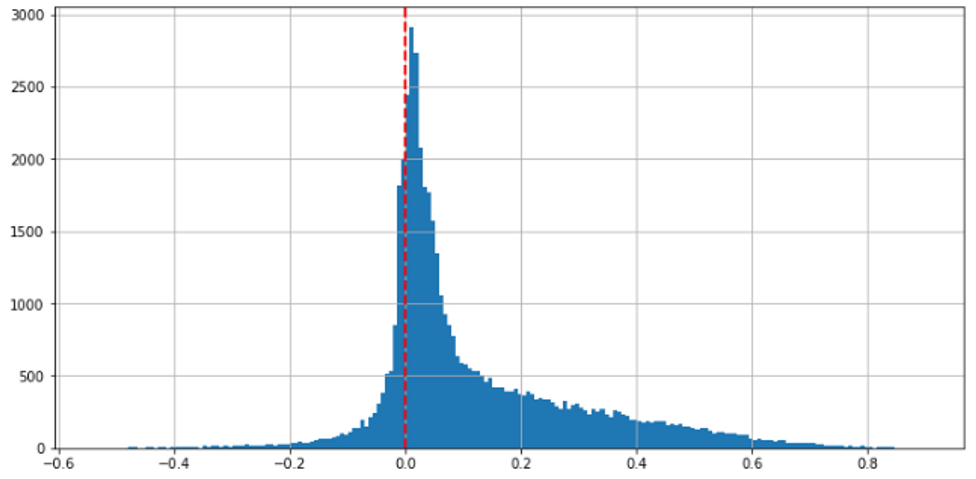 오른쪽으로 길게 뻗은 분포, 1에 가까운 score 가 많다는 뜻으로 해당 마케팅시 순영향을 유추할 수 있다.