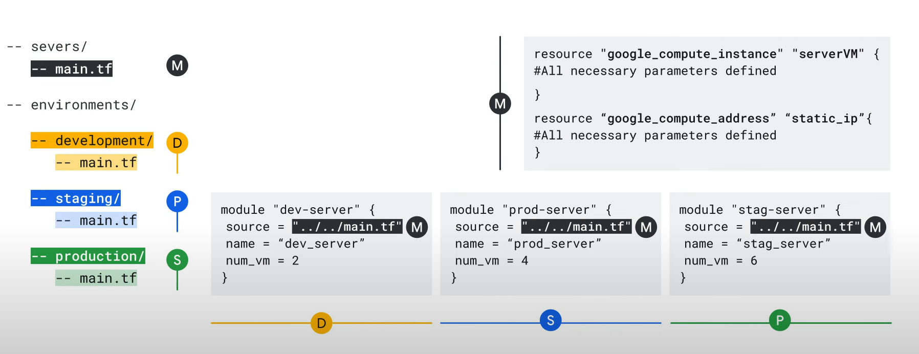 - Each environment can use the same module but with different configurations (e.g., names and number of servers).