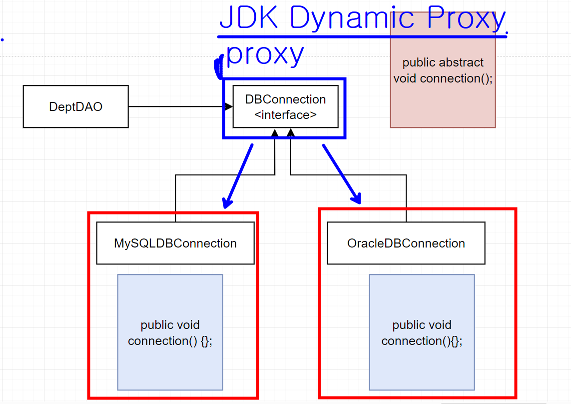 interface는 메소드(추상 메소드)를 선언만 할 수 있음 (프록시의 역할을 해줌)