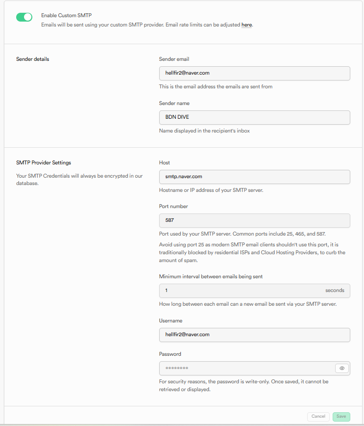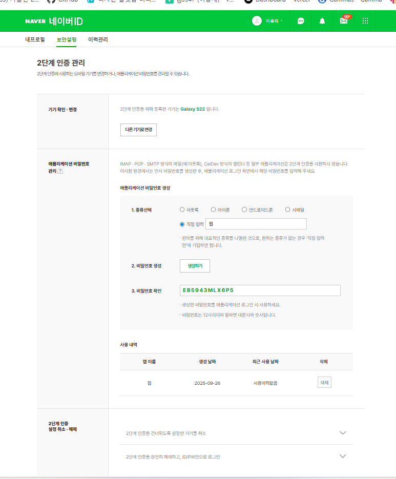 네이버 SMTP 비번설정필요
