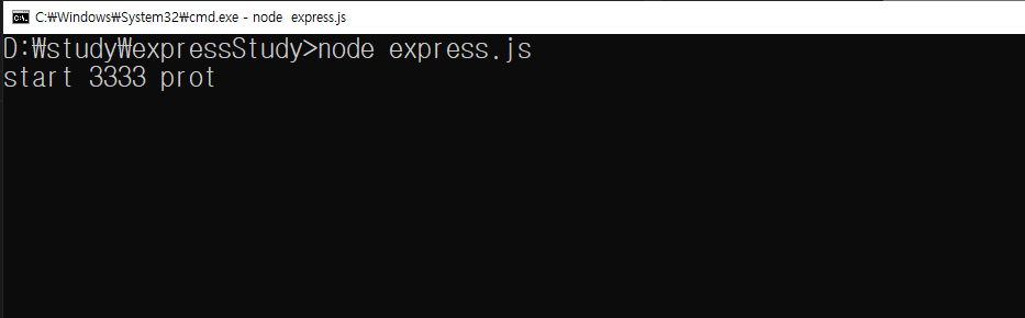 - 실행 방법은 아래코드가 저장되어있는 자바스크립트 파일을 만들고 해당 파일을 cmd 창에서 node '자바스립트 파일명' 수행 하면 서버가 실행 된다.