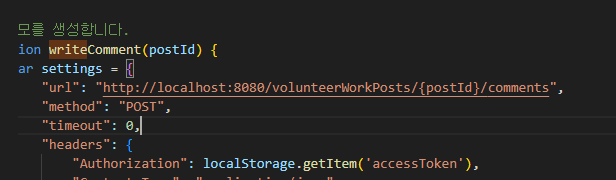 postId는 게시글마다 값이 달라서 변수로 받아야 한다 그래서