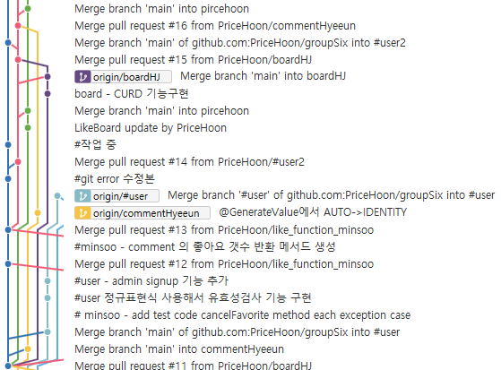 오늘은 프로젝트 마무리를 했다. 처음 팀원들과 상의한 것처럼 우리조는 하나라도 더 배워가는데 초점을 맞춰서 진행했기 때문에 추가기능 구현을 하지 못한게 아쉬움으로 남지만 그래도 필수 기능 구현을 했다는 점에서 뿌듯한 마음이 있다. 이번 프로젝트를 진행하는 도중에 git이 꼬여서 멘탈이 나간적도 있다.