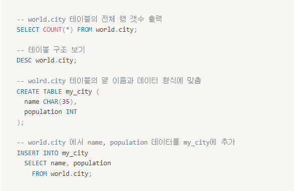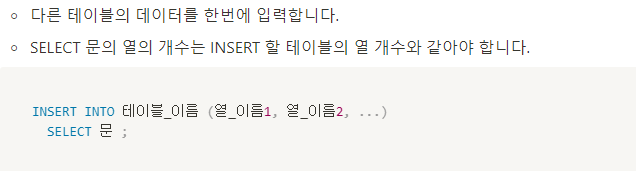 그리고 이번에 강의를 들으면서 처음 해 본 INSERT INTO ~SELECT문 같은 경우도 기억해 둬야 할 것 같다.