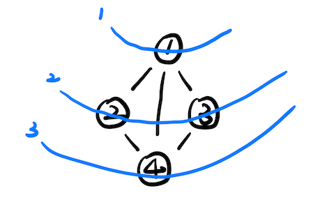 1에서 2,3,4를 갈 수 있지만 2를 먼저 탐색한다.