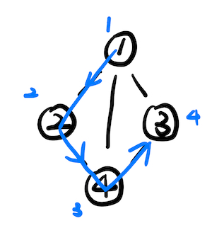 3 에서 4 를 갈 수 있음