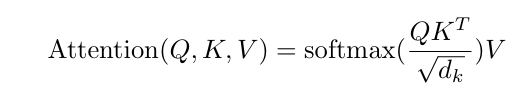 - Q, K, V는 각각 query(질문하는 주체->특정 단어), key(질문을 받는 주체->문장의 모든 단어들을 벡터화하여 stack한 Matrix), value(데이터의 값)을 의미함